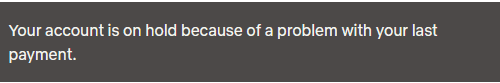 1. Error code E101 (Account on Hold Due to a Problem With Your Last Payment)